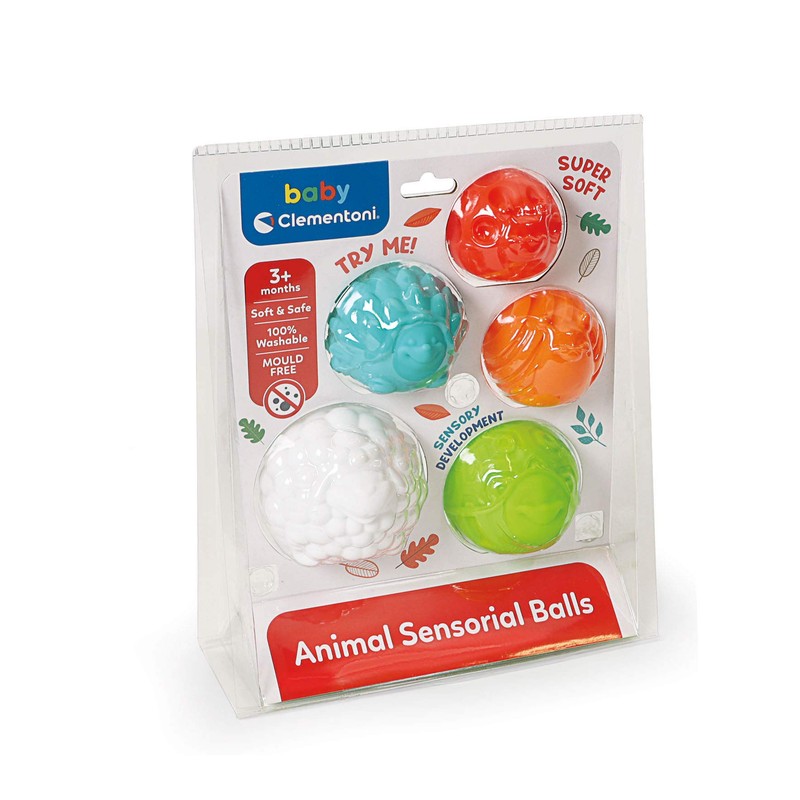 Clementoni Animals 17454 Animal Sensory Balls - Soft Sensory Balls - Various Textures, Shapes and Colours Toy for Newborns, Children from 3 Months, Multicoloured, Single, One Size