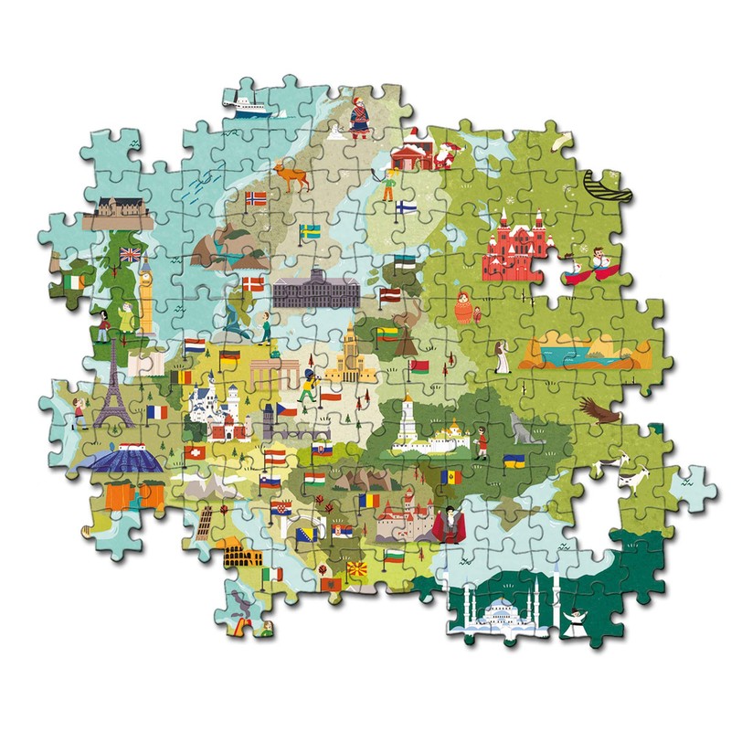 - Puzzle mapa 250 piezas de Europa para aprender de este continente y sus lugares de interés