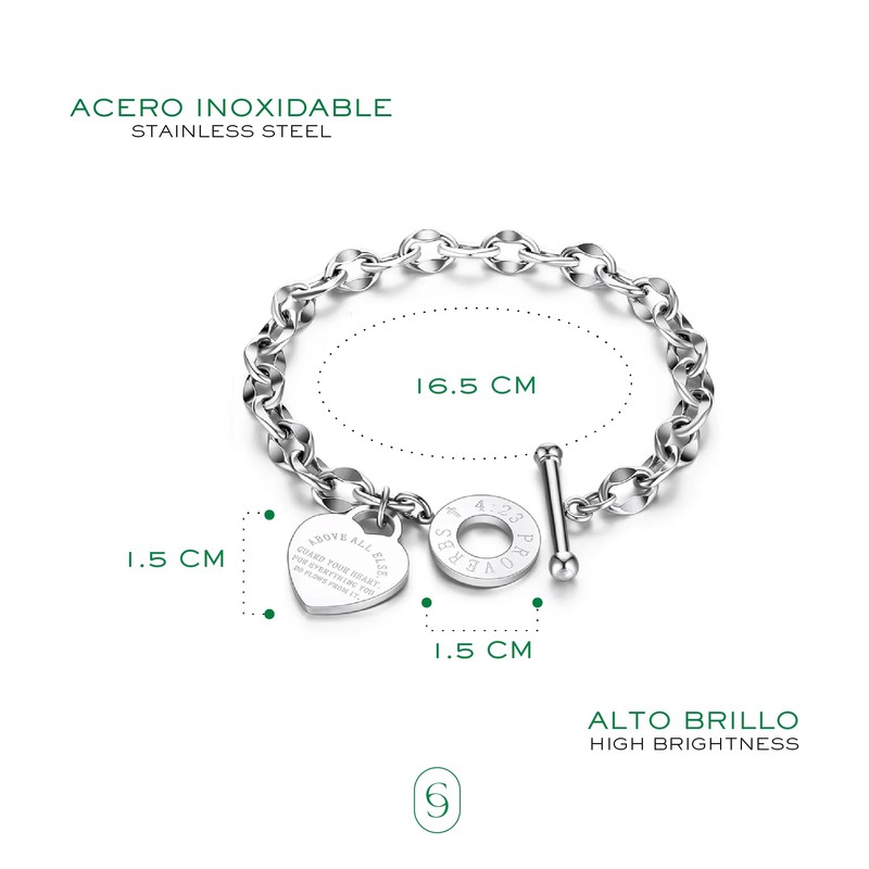 CLEPSIDRA® Pulseras mujer de acero inoxidable. Brazalete de corazón de uso diario. Regalos para mujer, mamá, novia o amiga. Joyeria para toda ocasion. Accesorios para mujer a la moda. Jewelry Gift