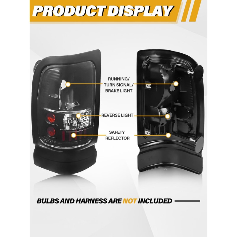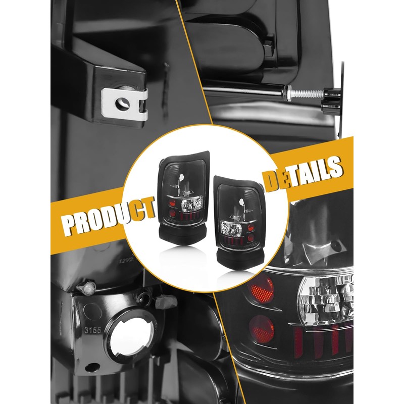 - 【PLUG-N-PLAY】: Bulbs and Wiring Harness are Not Included, 1994-2001 Halogen Tail light assembly for RAM allows you to effortlessly and quickly complete the installation without any professional help within 20 minutes, direct bolt-on OE fitment