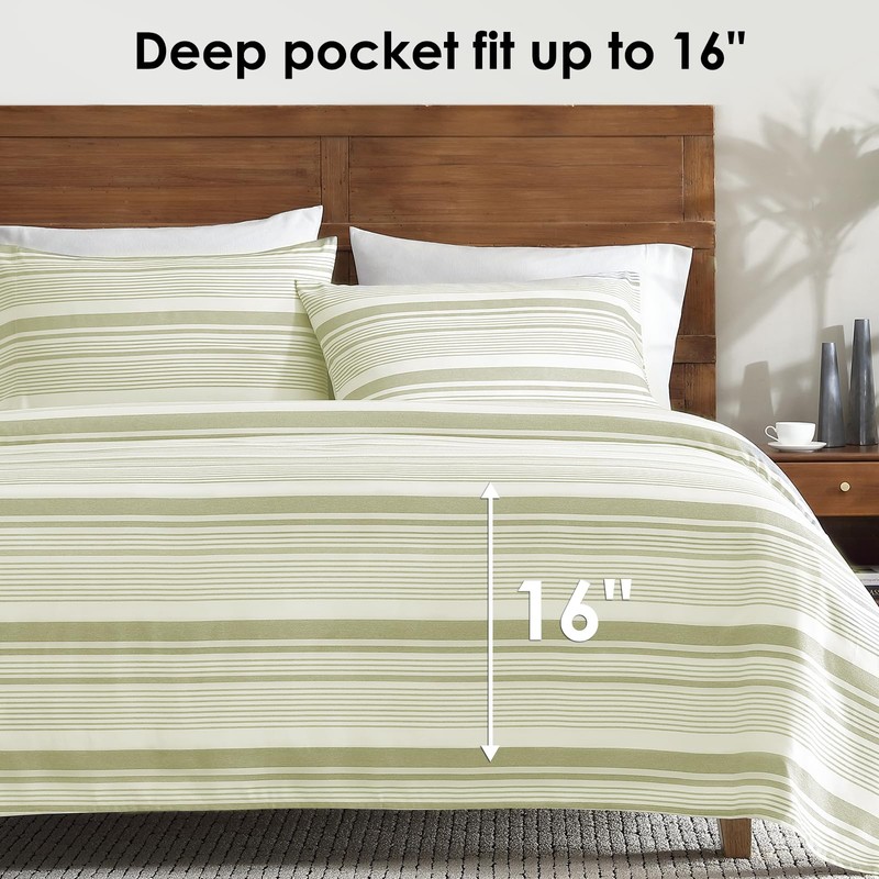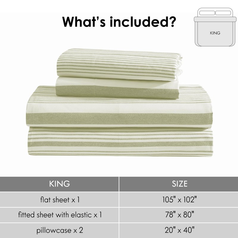 ClevaHome Classic Stripe Sheet Set - 4 Pieces Super Soft & Breathable Bed Sheet Set with Deep Pocket, Enhanced Comfort & Easy Care (King, Sage Stripe)