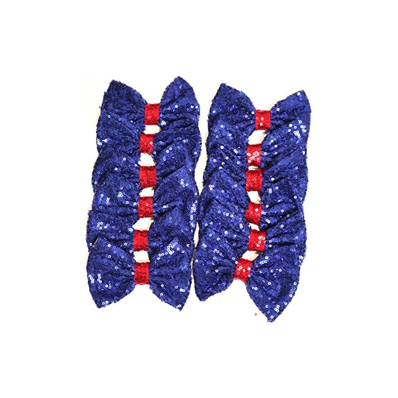 CLGIFT Set of 12 Sequin Bows, 5 Inches Large Glitter Bows - No Clips (Blue w/Red Center)