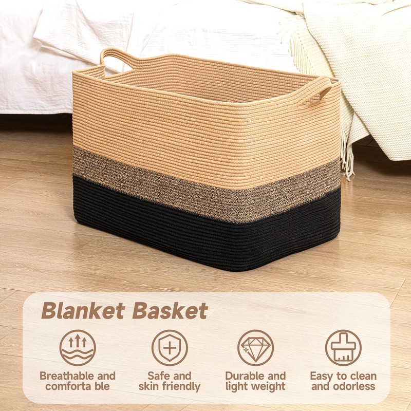 • Organize Your Home, Simplify Your Life! Tired of clutter? Our 22x17x13..8-inch square cotton rope storage basket offers spacious storage for kids’ toys, living room blankets, bathroom towels, and bedroom clothes. Perfect for kids’ rooms, play areas, bathrooms, and bedrooms, it’s a must-have for busy households!