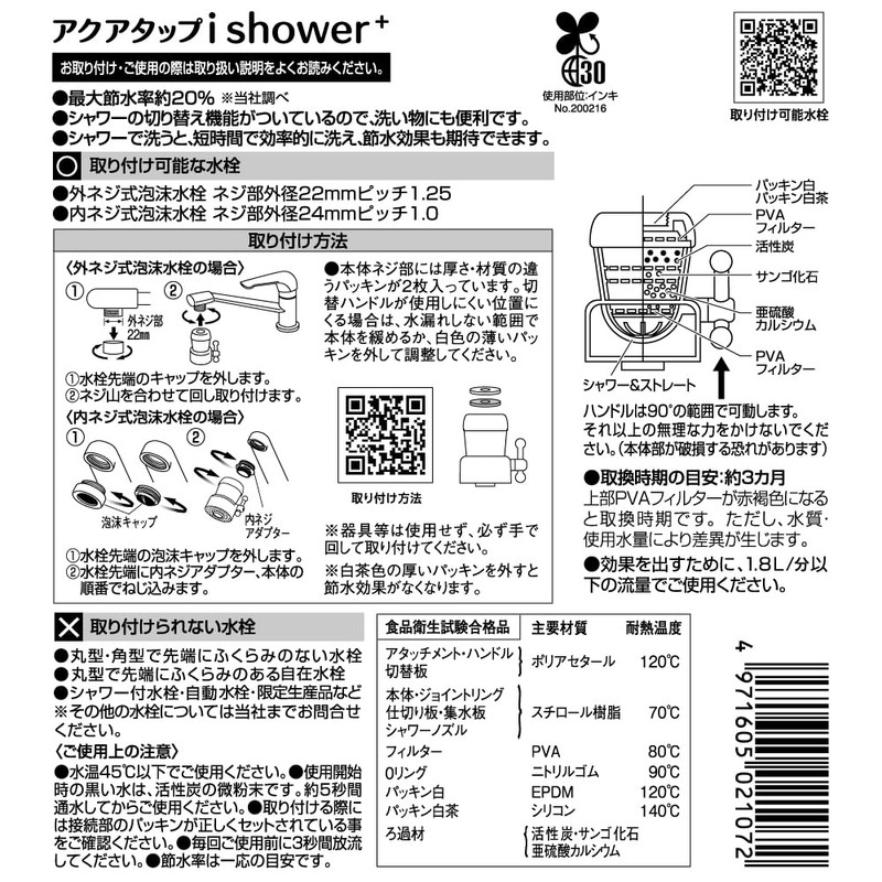 | Material Type: | [Materials] Polyacetal, Styrol Resin, PVA, Nitrile Rubber, EPDM, Silicone, Activated Carbon, Coral Fossil and Calcium Sulfite |