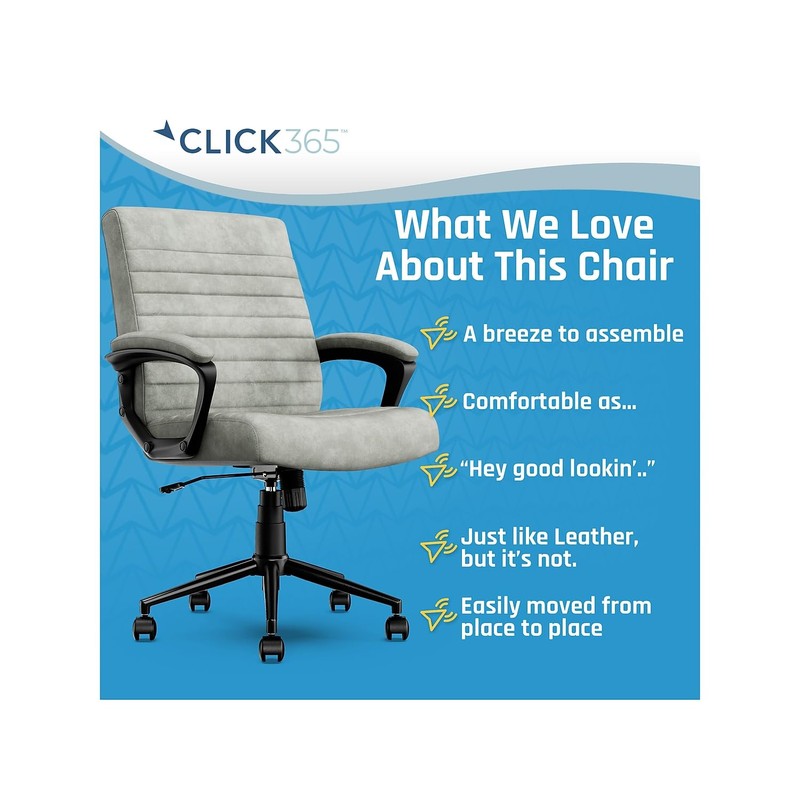 Click365 Transform 3.0 Ergonomic Mid Back Desk Chair Vegan Leather Grey