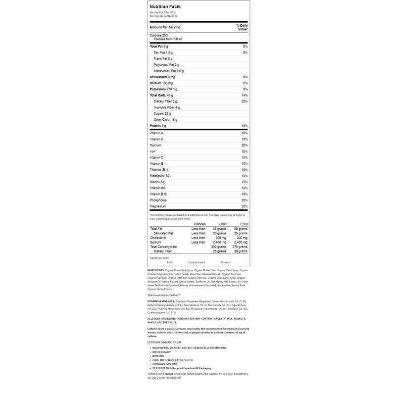 - MADE FROM ORGANIC INGREDIENTS – Clif uses 70% organic ingredients, such as organic rolled oats, organic roasted soybeans, organic milled flaxseed, and organic soy flour in its energy bars.