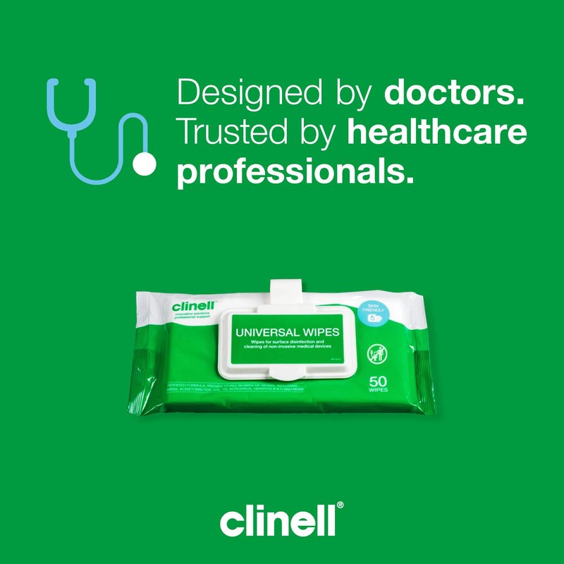 Clinell Universal Cleaning and Surface Disinfection Wipes Multi Purpose Wipes - Kills 99.99% of Germs, Effective from 30 Seconds - 1 x Clip Pack of 50 Wipes