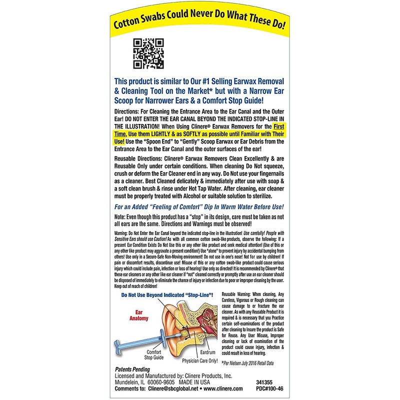 - Wax in? Or wax out? Cotton swabs just push earwax and debris farther into the ear canal whereas Clinere helps remove earwax and debris with a flexible scoop without clogging the ear
