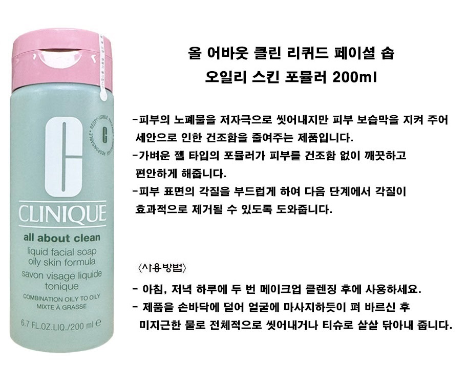 크리니크 올 어바웃 클린 리퀴드 페이셜 솝 오일리 200ml