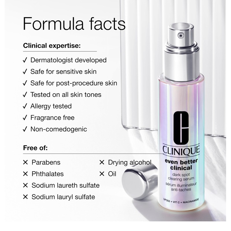 Targets tough dark spots Visibly reduces stubborn dark spots, including sun spots, age spots, and post\-blemish marks. Helps prevent future dark spots Helps soothe skin from environmental irritants that can trigger future hyperpigmentation. Delivers results you can see Skin looks brighter and more radiant, with a more even\-looking tone. Feel\-good texture Lightweight, oil\-free formula sinks in quickly.