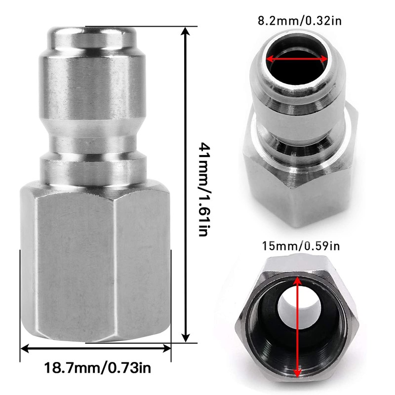 • Ajuste: este conector macho de conexión rápida se adapta a conectores hembra de 1/4 o 3/8 pulgadas de conexión rápida / enchufe de acoplamiento rápido o rosca hembra de 1/4 pulgadas o 3/8 pulgadas de pulgada