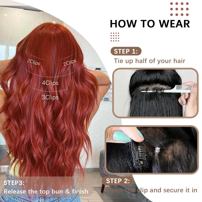 - 25 colors Clip-In Hair Extensions: The 4PCS 20-inch hair extensions clip-ins add an elegant touch to your look, and the wavy texture blends seamlessly with real natural human hair. Just a BB clip, which will not damage the scalp. It only takes a few minutes to put on and remove.