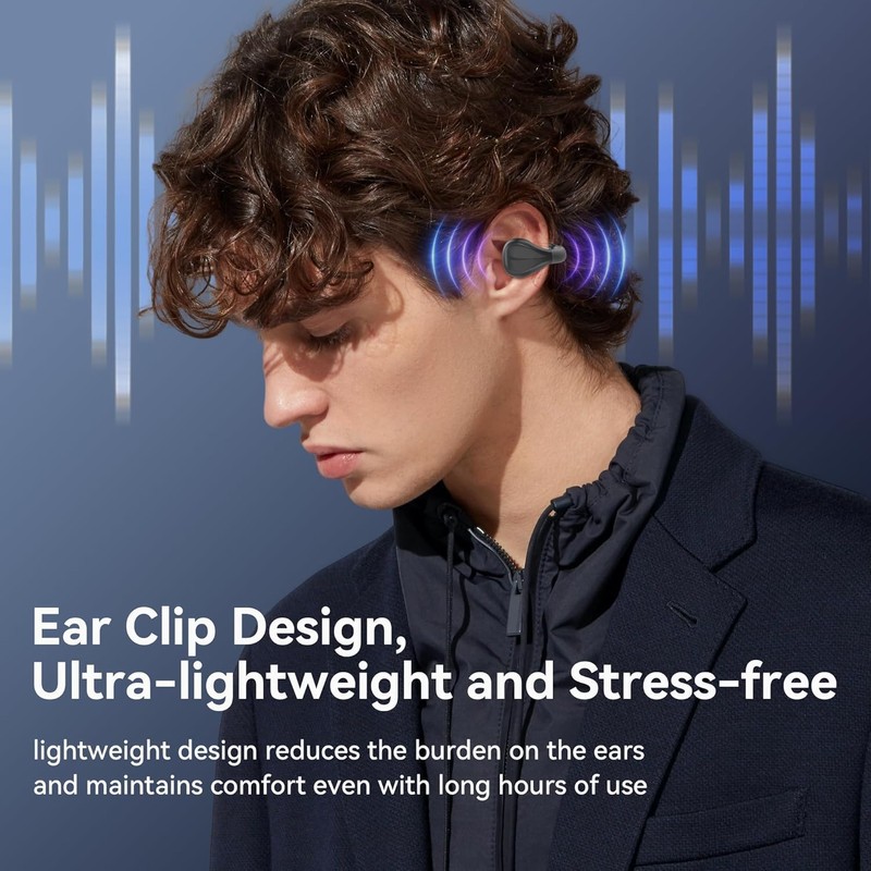 - 【Air Conduction Technology for Maximum Comfort】The clip-on True headphones transmit sound through air vibrations directly into the upper ear canal, delivering a pressure-free experience even during extended use. Patented technology minimizes sound leakage, allowing music to flow smoothly into the ear like a whisper.