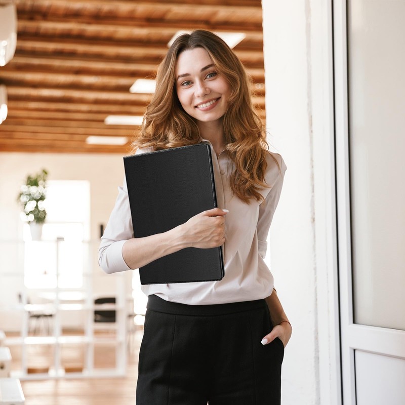 • Always ready: with a size of 32.7 x 24.7 x 2.5 cm and weight of 520 g, the A4 workbook is ideal for the office, conferences, fairs and events. So you can always quickly take important notes and to safely collect and store A4 leather document folder