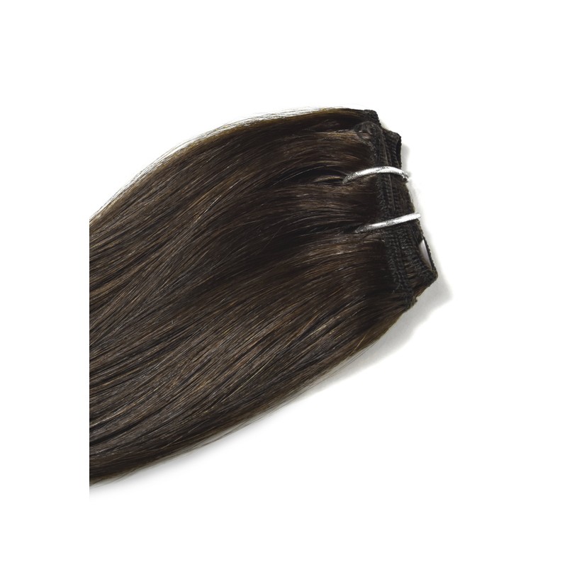 This is the fastest way to extend your hair. A single section usually applied to the back of the head using the five attached clips.