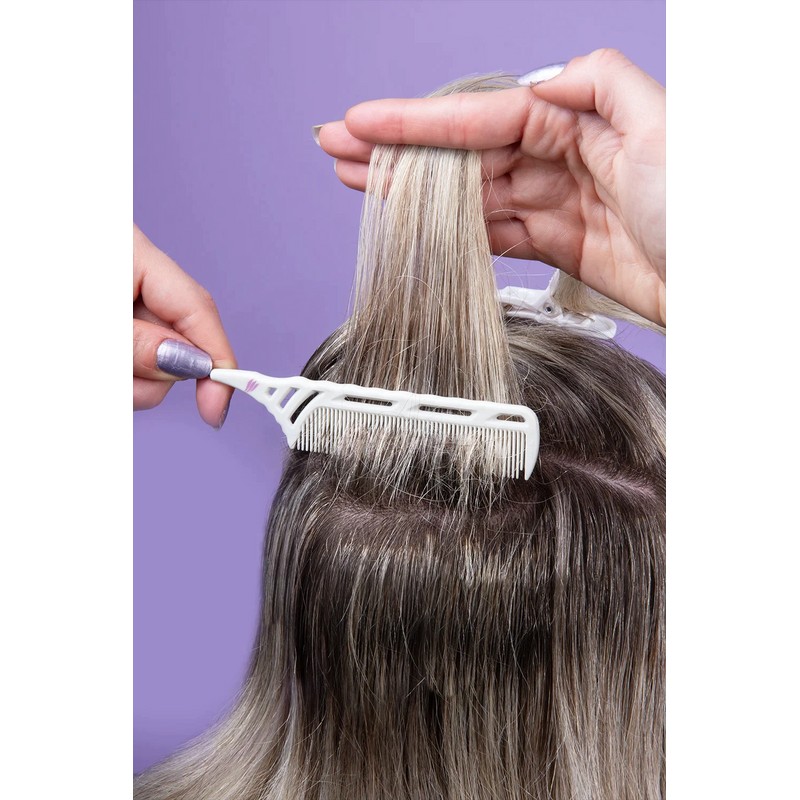 When it comes to creating precise sections and clean partings nothing quite compares to the Pintail Comb. The sharp, pointed tip gently but precisely slides through the hair to section off specific portions of hair whilst the super fine teeth on the comb work to detangle tiny sections. The comb can also be used as a backcombing device for styling or creating a base for Clip-Ins making it the ultimate multi-purpose tool. An absolute essential for professionals as well as hair extension wearers.