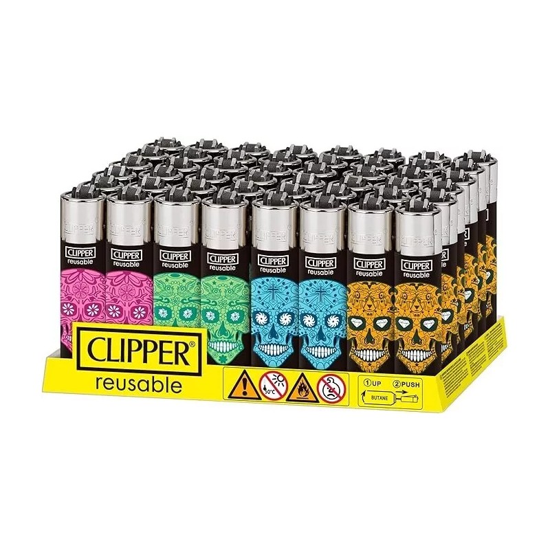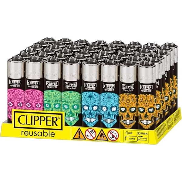 Clipper - Classic Large Reusable Lighter 48 Pack - Sugar Skulls