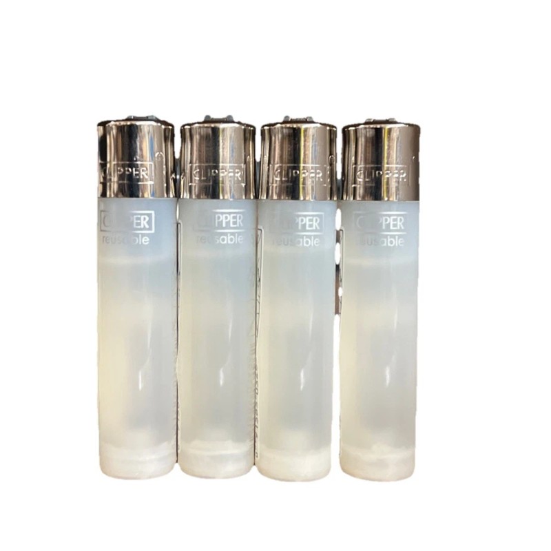 Enhance your lighting experience with this pack of four Clipper flint lighters. The translucent, clear design allows you to see through the lighter, adding a unique touch to your collection. These full-size refillable lighters are perfect for anyone who enjoys collecting unique and practical items.