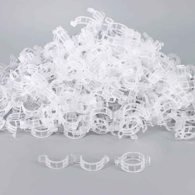 - Alta calidad: hecho de plástico PP duradero de alta calidad, resistente a la intemperie, bien contra el envejecimiento, altas temperaturas, putrefacción. No es fácil de agrietar, es maravilloso, ligero, estructura simple, fácil de usar. Y no dañan la vid o los tallos.