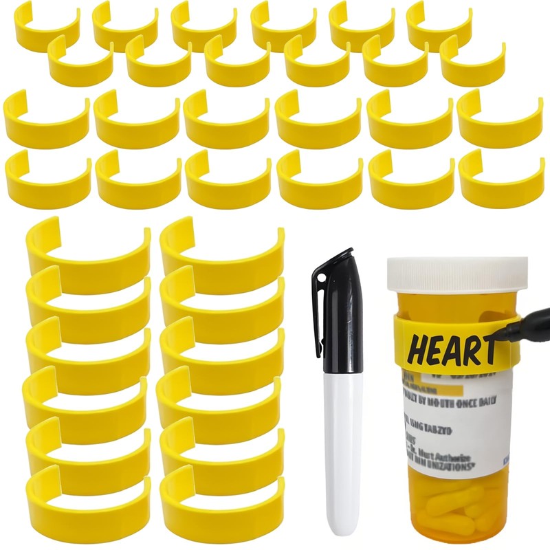 Elevate your medication management with our innovative Pill Bottle Clip Set. Designed for both daily use and travel, these durable clips make organizing and identifying your medications a breeze. Each set includes 9, 18, or 36 clips in various sizes, along with a mini marker pen for easy labeling. Simply snap the clips onto your pill bottles, label them, and enjoy a clutter-free and efficient organization system.