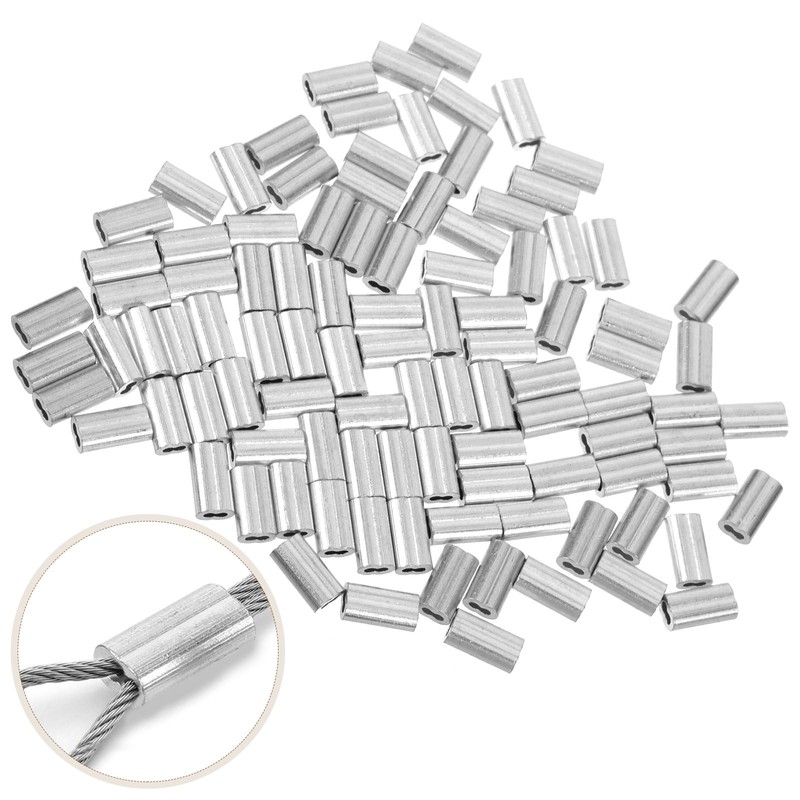CLISPEED Wire Rope Sleeves, 1.0mm 100pcs Aluminum Crimping Loop Sleeves Cable Crimps Ferrules Wire Rope Crimping Tool for Wire Rope and Cable Line