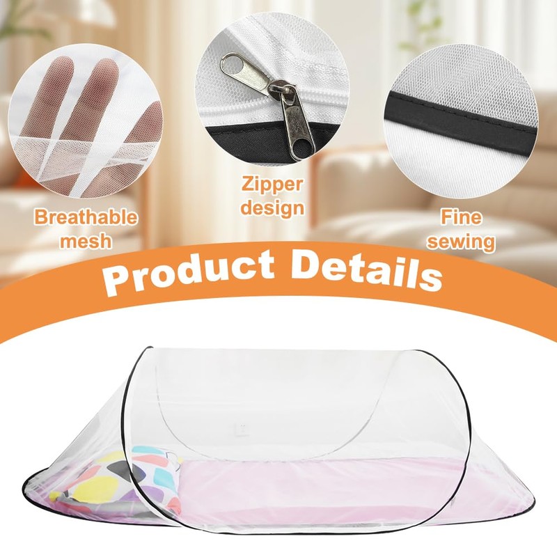 - [Foldable Mosquito Net with Zipper]: Our mosquito net pop-up with zip provides comprehensive 360 degree protection. With our mosquito net travel pop-up you can sleep safely and peacefully anywhere without being disturbed by insects.