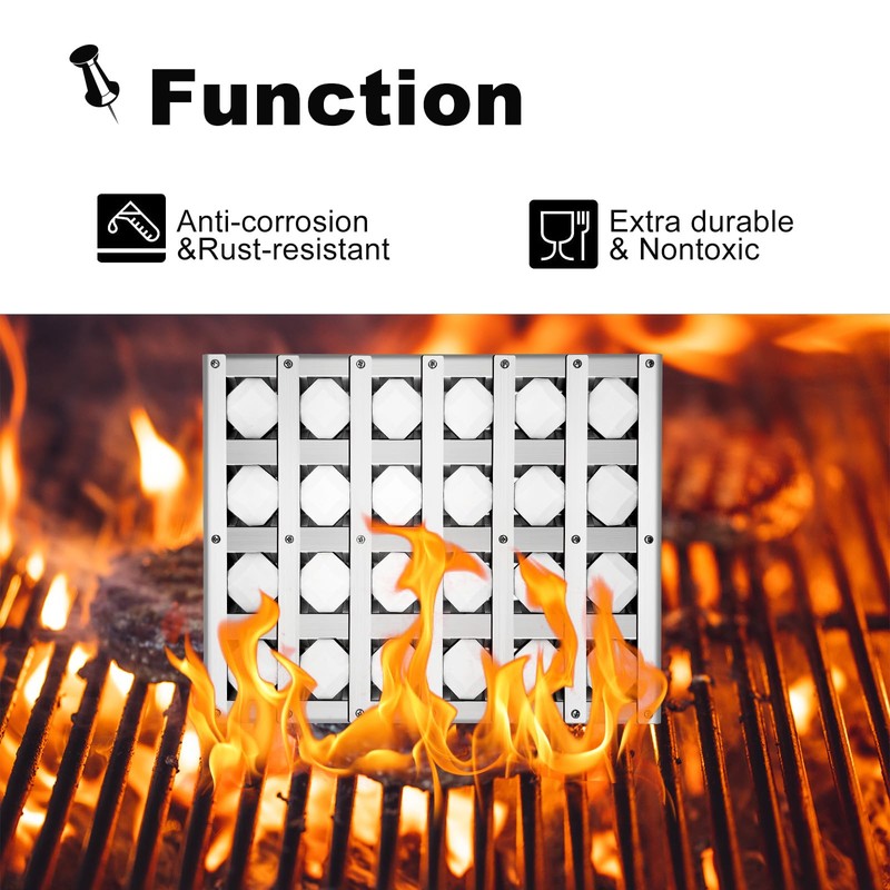 - [Flame Tamer Functions] To keep residues from getting into or blocking the burner tube holes, prevent food directly exposure to flame, help to catch drippings and oil, and heat your food evenly to add delicious and smoky barbecue flavor in your backyard outdoor bbq gathering, as the gas grill heat tent grill parts.