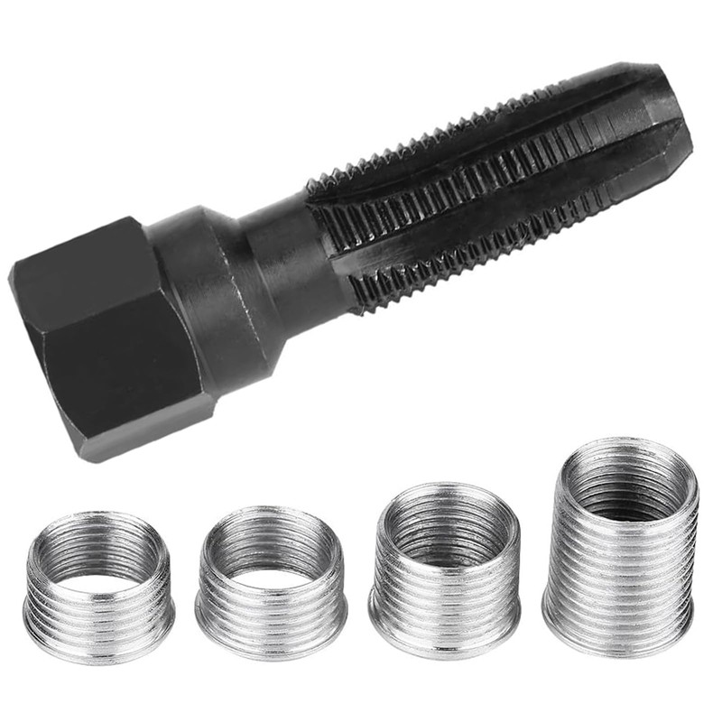 - Candle Thread Repair Kit: This spark plug thread repair tool contains 1 spark plug tap (M14 x 1.25) and 4 tap accessories.