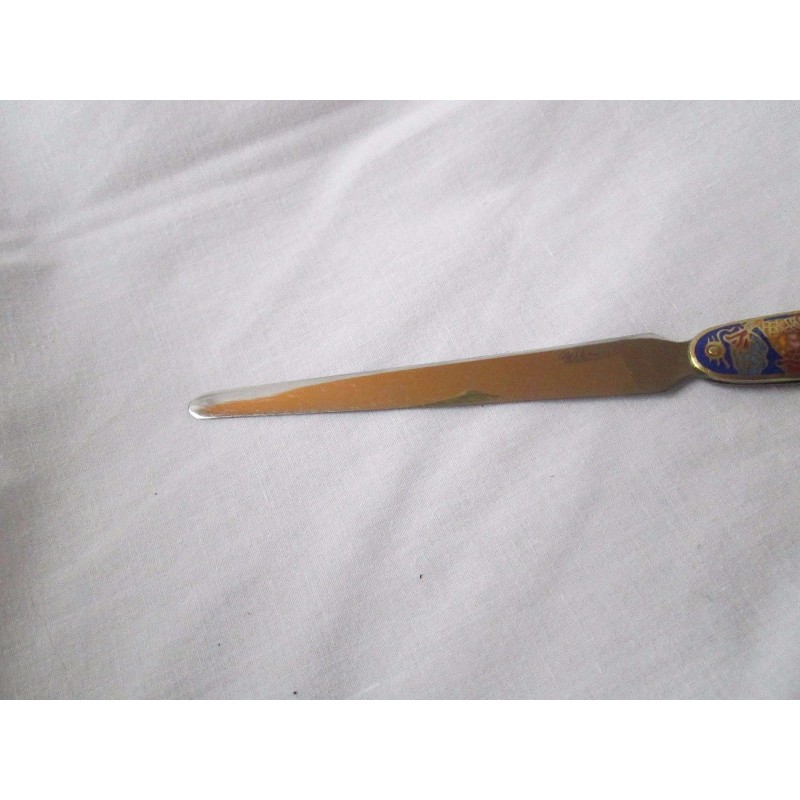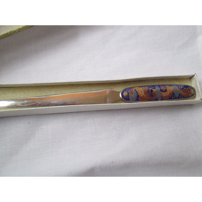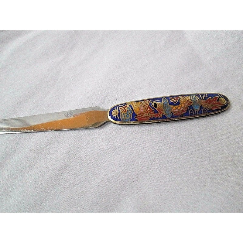 CLOISONNE LETTER OPENER - VINTAGE W/ INLAID ABSTRACT DESIGN- 6 1/2 IN. BLUE