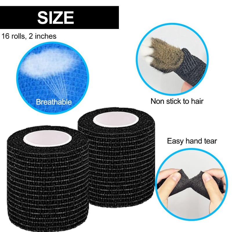 - Self Adhesive Bandage Wrap-Adheres only to itself for secure, CLOOFLAR Vet Wrap ideal for sensitive skin or furry pets. Provides strong support without sticking to skin, hair, or clothing.No Residue & Pain-Free Removal