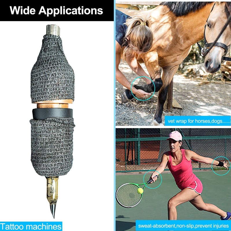 - Versatile Applications-Multi-functional for sports wraps (knees, wrists, ankles), Vet Wrap, tattoo grip tape, anti-slip tool for rackets, and first aid. Durable and water-resistant for indoor/outdoor use