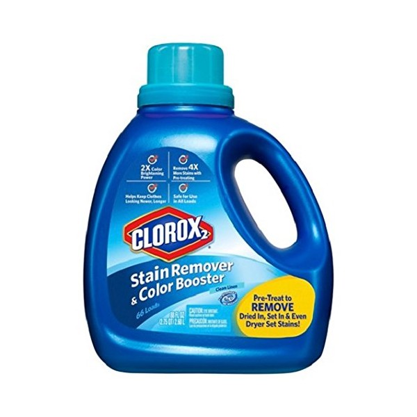 Clorox 2 Laundry Stain Remover and Color Booster, Clean Linen, boosts colors and whitens whites leaving clothes looking brighter with a clean linen scent. Safe for use in both HE and standard washing machines, its special formula will also help remove stains on the first wash when used as directed and will leave your clothes with a fresh, clean linen scent. Clorox 2 Laundry Stain Remover and Color Booster is safe for both colored and white loads and works great with delicates. It will also help you save money by keeping your clothes looking their best for added longevity. Say goodbye to stains and whiten and brighten with Clorox 2 Laundry Stain Remover and Color Booster. One 88 fl. oz. bottle of Clorox 2 Laundry Stain Remover and Color Booster Powder, Clean Linen Removes stains and whitens and brightens clothing, even delicates Safe for both HE and standard washers Leaves clothes with a fresh, clean linen scent Keeps clothes looking their best longer ||Package Quantity: 1 ||Used For: Front-loading Washing Machine, High Efficiency Washing Machine, Top-loading Washing Machine ||Product Form: Liquid ||Number of Uses: 85 Loads ||Capacity (volume): 88 ||Product Formulation: Concentrated ||Recommended Surface Application: Clothing, Cotton, Fabric, Polyester, Wool ||Scent: Linen ||Product Results: Stain Remover, Eliminates Odors, Prevents Fading, Removes Blood, Removes Dirt, Removes Grease, Removes Soil, Safe for Use with Delicates ||Travel Size: No ||Health Facts: Phosphate-free, Dye-free ||Product Warning: keep out of eyes, flush immediately if product enters eyes, keep out of reach of children ||Item can be gift wrapped.