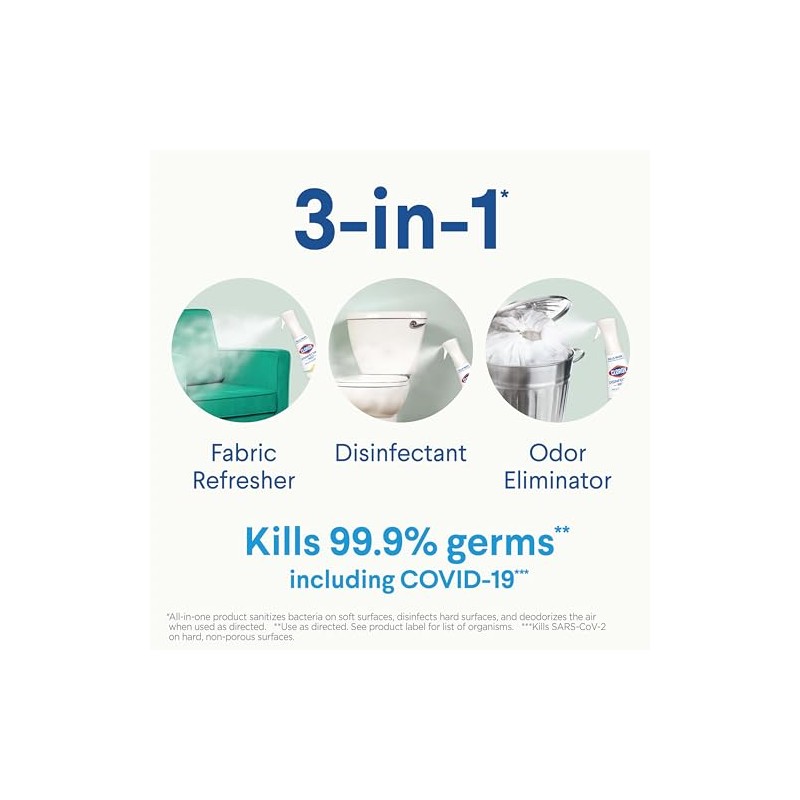 - 3 IN 1 DISINFECTANT, FABRIC REFRESHER, ODOR ELIMINATOR*: Color safe**** formula disinfect hard surfaces*, eliminate odors and sanitize fabrics