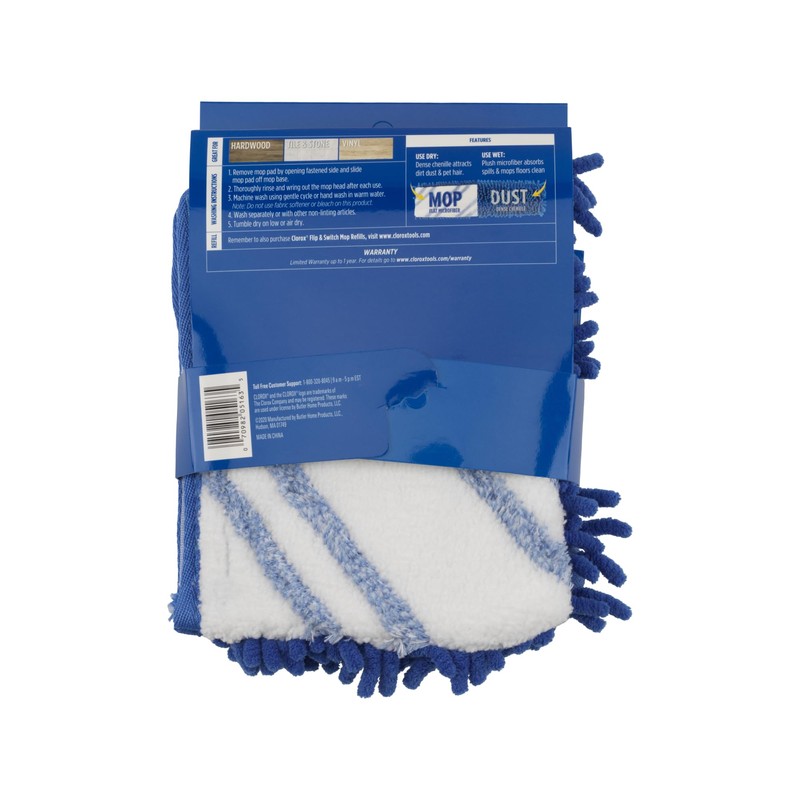 - Recambio de trapeador listo para volar: diseñado para su uso con la fregona Clorox Ready Flip Spray (se vende por separado) y cuenta con un lado azul de chennille para espolvorear en seco y un lado de microfibra blanco y azul para trapear en húmedo