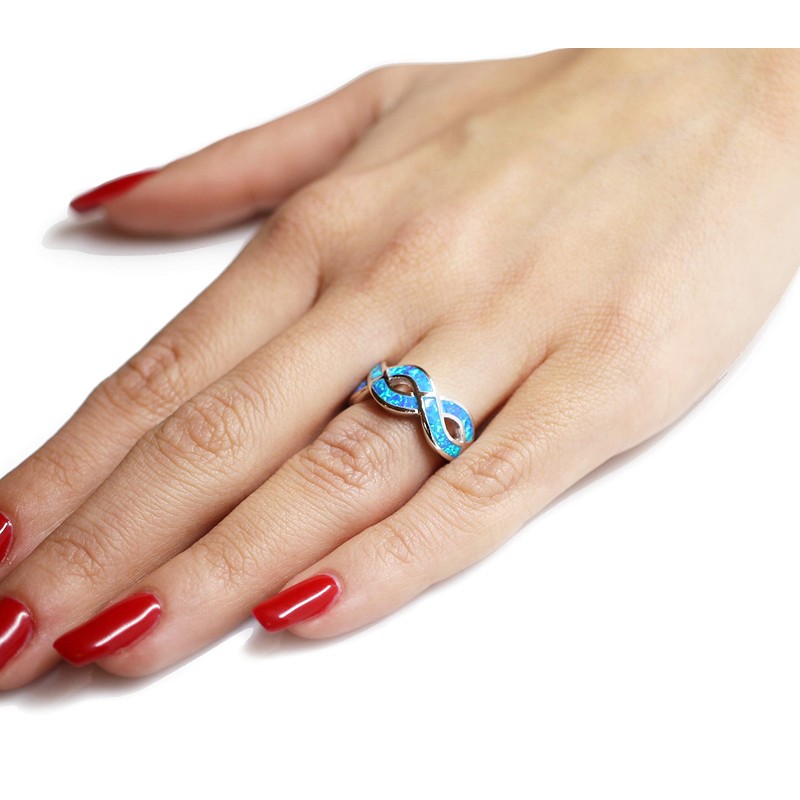 CloseoutWarehouse Blue Simulated Opal Infinity Knot Ring Sterling Silver Size 6