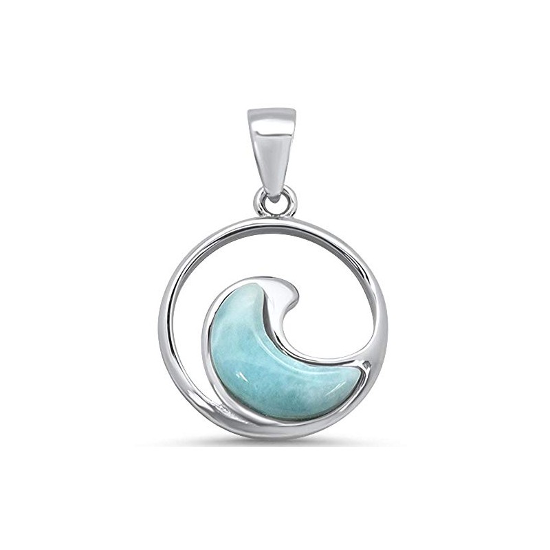 CloseoutWarehouse Natural Larimar Ocean Wave Round Pendant Sterling Silver
