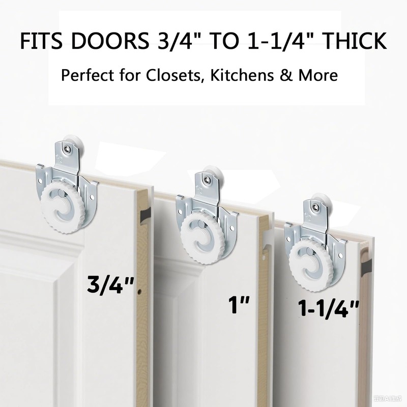 - Wide Application for Various Doors : Designed to fit doors ranging from 3/4" to 1-1/4" thick, this sliding door hardware is versatile and ideal for use in wardrobes, kitchens, closets, bathrooms, and more. Please refer to the provided dimensions before purchasing to ensure compatibility with your door.