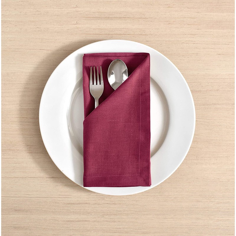 Cloth Napkins Dinner Washable Set of 4 in Cotton Linen Fabric Premium Quality, Mitered Corners for Reusable Every Day Use Pre Shrunk and Good Absorbency Christmas Cloth Napkins (Pack of 4, Burgundy)