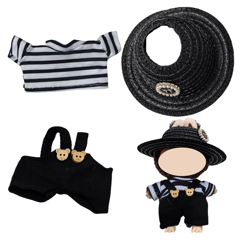 Clothes Set Compatible with 17cm Doll,Big Hat and Overalls Set for 15cm Accessories Suit, Cute Clothes for dolles Dress up Unique Style