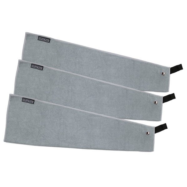 Clothlete Magnetic Microfiber Golf Towel 16" x 24" (Gray, 3 Pack)