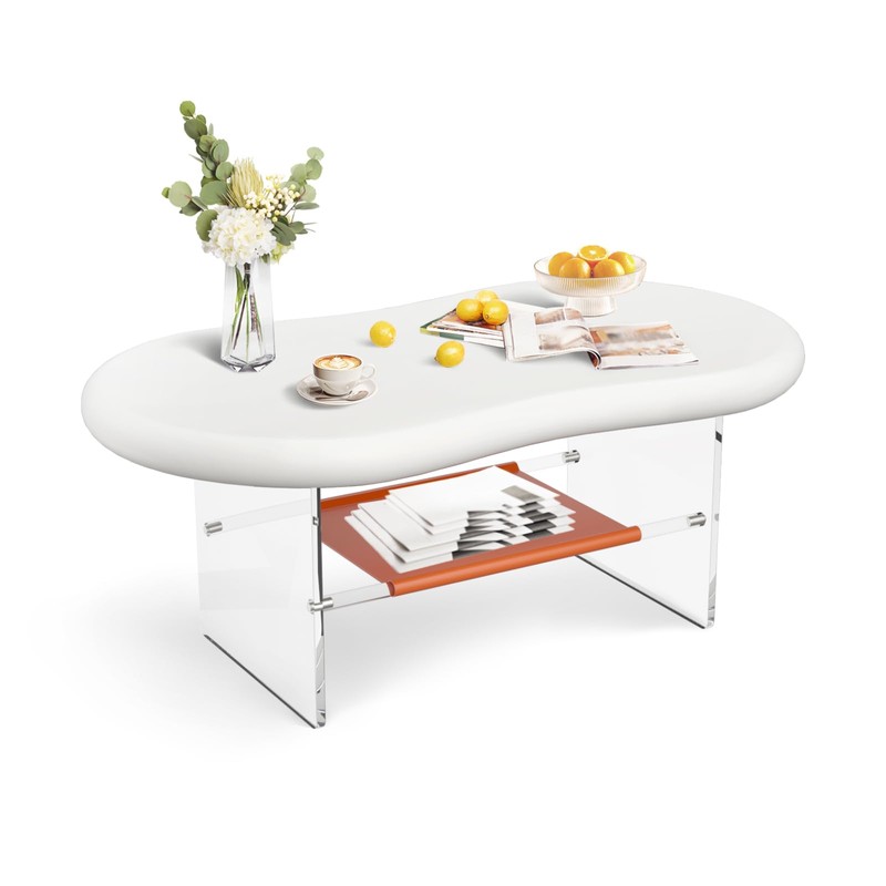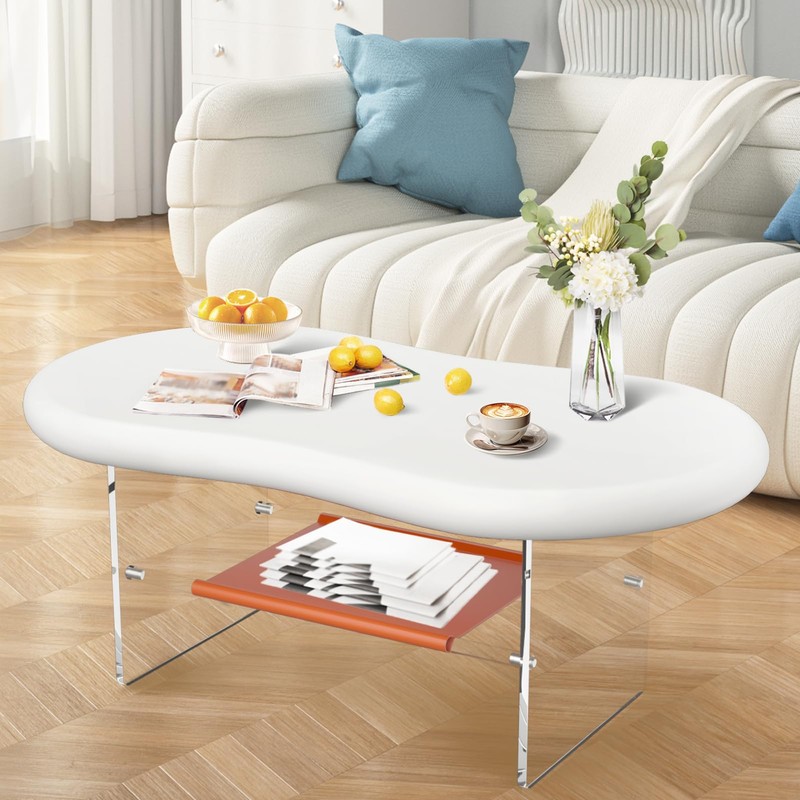 Cloud coffee table, irregular shape tea table for living room, 2 tier modern coffee table with storage shelf, cute coffee table with acrylic legs for small space, can be used in living rooms bedrooms reception rooms offices