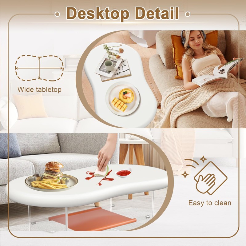 - Cloud/Peanut Table: Our white coffee table top is made of density board, 2.36 inches thick, finely polished, with a smooth and delicate surface and comfortable touch. The desktop measuring 39.37 inches x 23.62 inches is very spacious