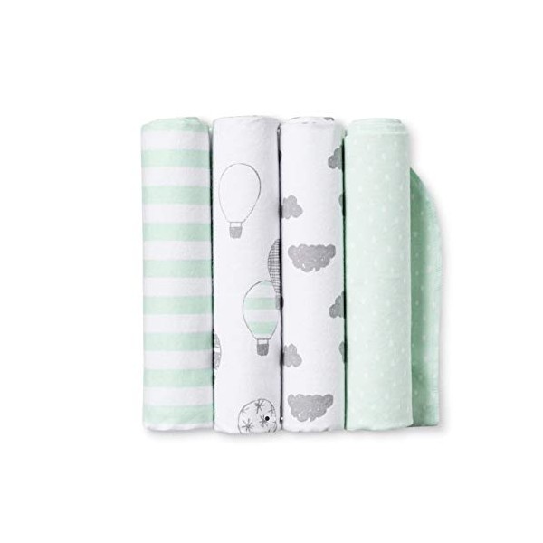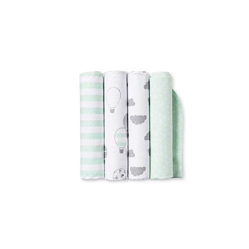 Cloud Island Flannel Receiving Blankets Mint/Grey 4 Count