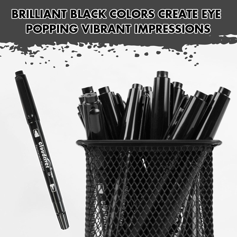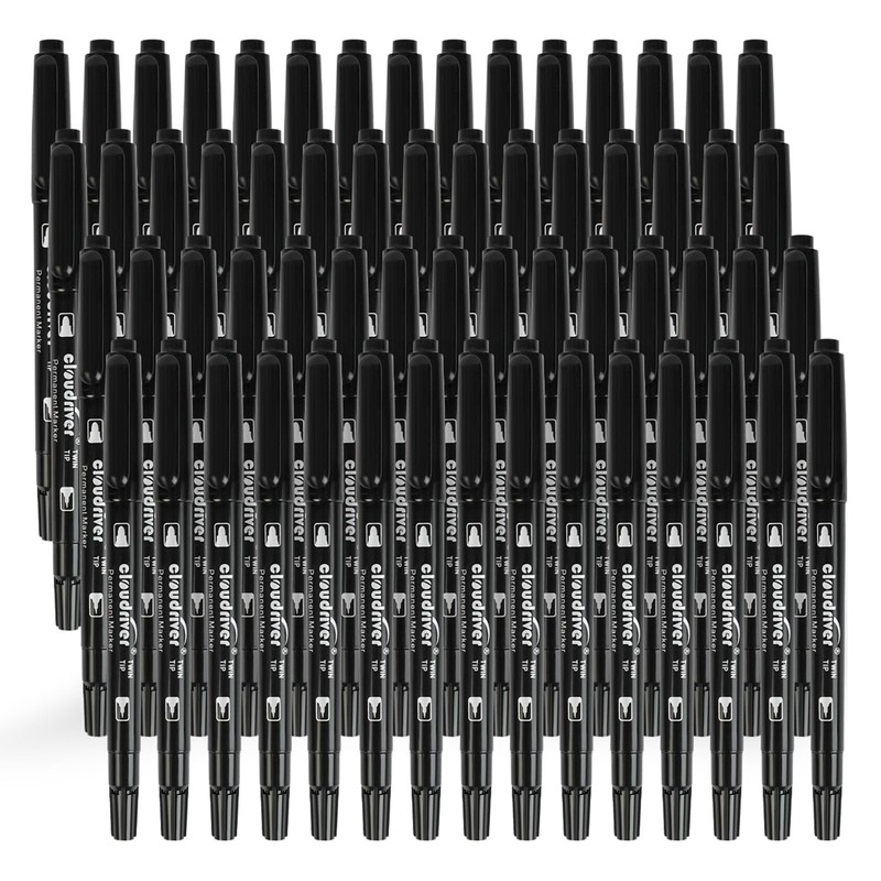 cloudriver Ultra Fine Permanent Markers, 60 Bulk Pack Twin Tip Black Permanent Marker Set, Waterproof and Quick Drying