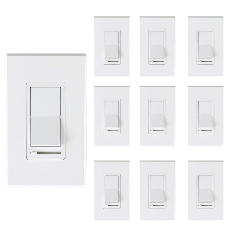[10 Pack] Cloudy Bay 3-Way/Single Pole Dimmer Electrical Light Switch for 150W LED/CFL, 600W Incandescent/Halogen,Wall Plate Included,Pack of 10