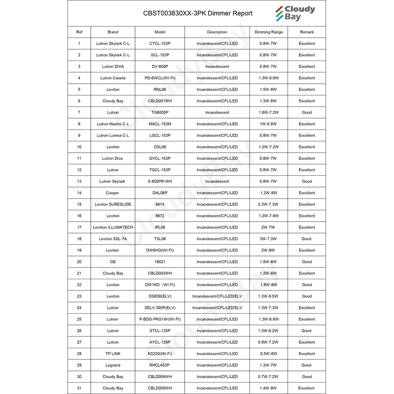 | Manufacturer: | Cloudybay Lighting |