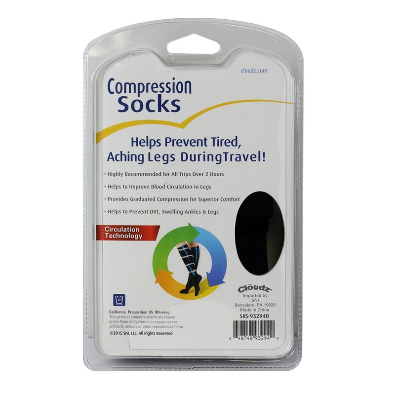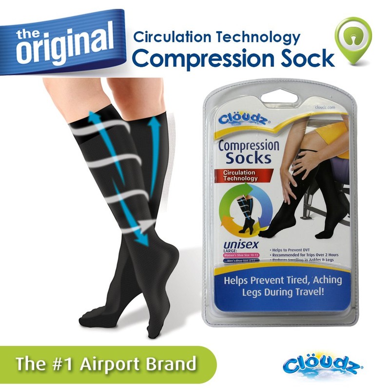 Cloudz - Compression Flight Socks - Large (Unisex) - (Men's Shoe Size 9-12, Women's Shoe Size 10-13)