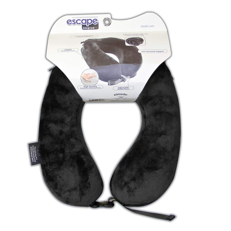 Cloudz Escape Premium Memory Foam Travel Neck Pillow - Black