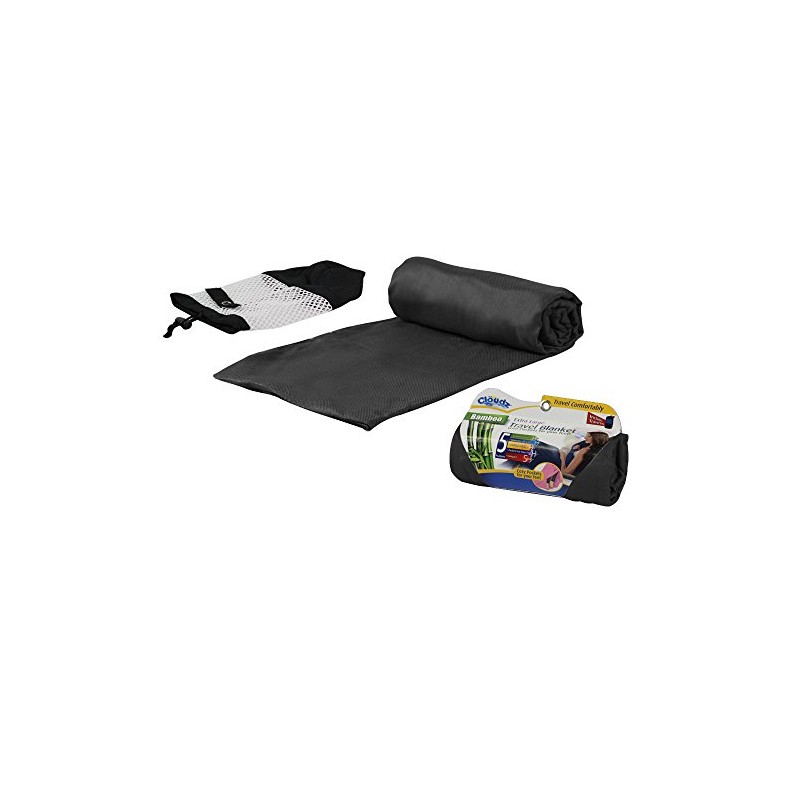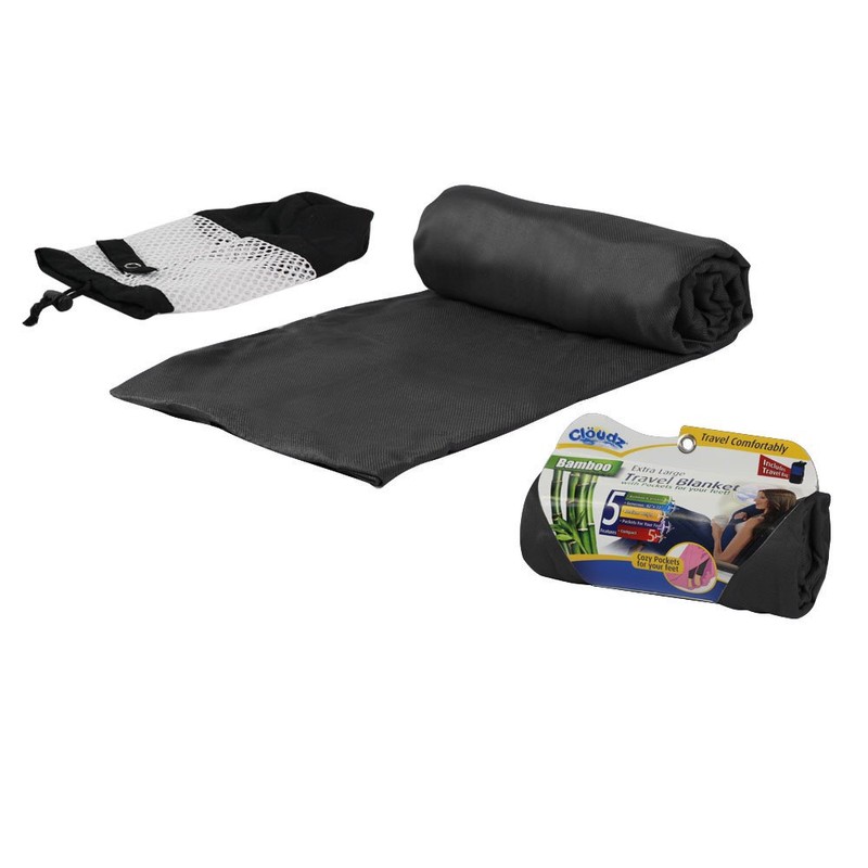 Cloudz Extra Large Airplane Travel Blanket for Your Flight, Car, Camping, Home or Comforting Warmth Anywhere! Includes Warm Cozy Pockets for Your Feet and a Travel Bag - Black