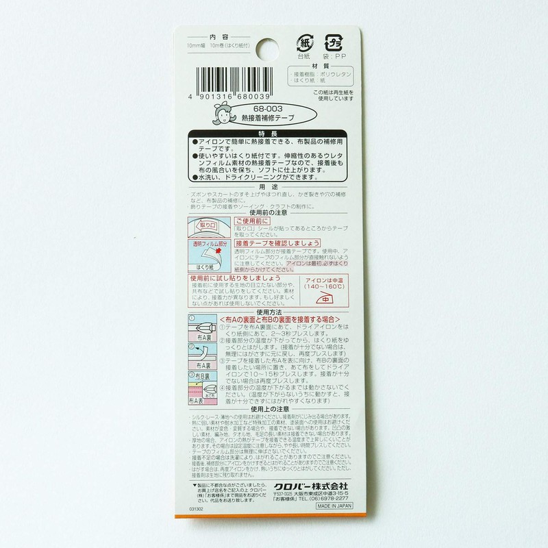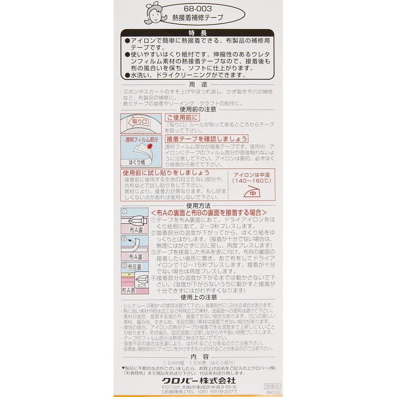 Clover 熱接着補修テープ はくり紙付き 10mm幅 10m巻 68-003